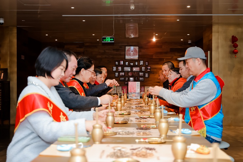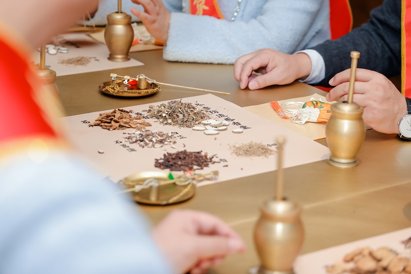 互动区,医师为北京榜样代表讲解了制作香囊所需药材的名称和药性,并指导大家称重、研磨、加工,在实践中感受中医药文化的魅力。